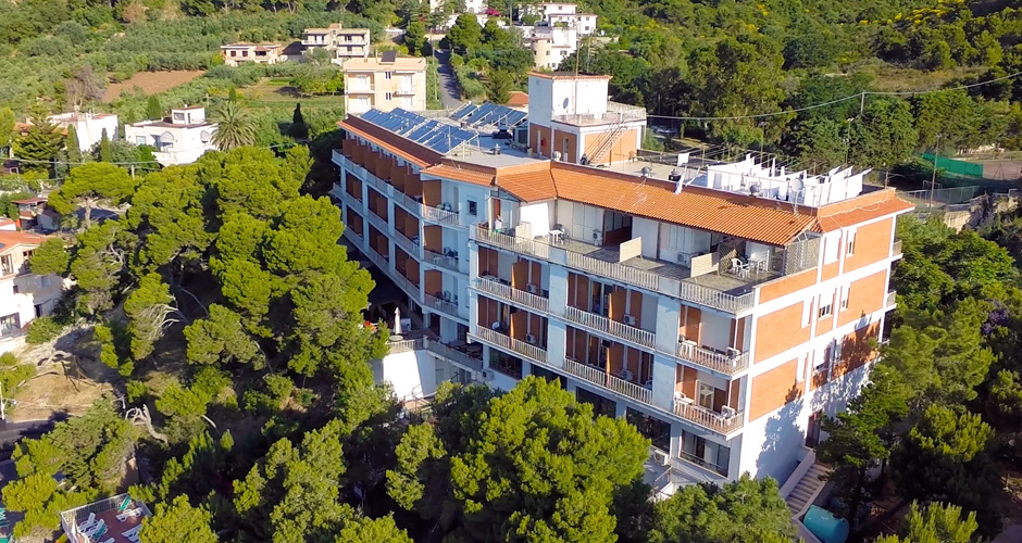 The Hotel is located in a spectacular bay, directly on the large white sand beach and has a private beach, equipped with umbrellas and sunbeds, swimming pool, table football, panoramic restaurant.