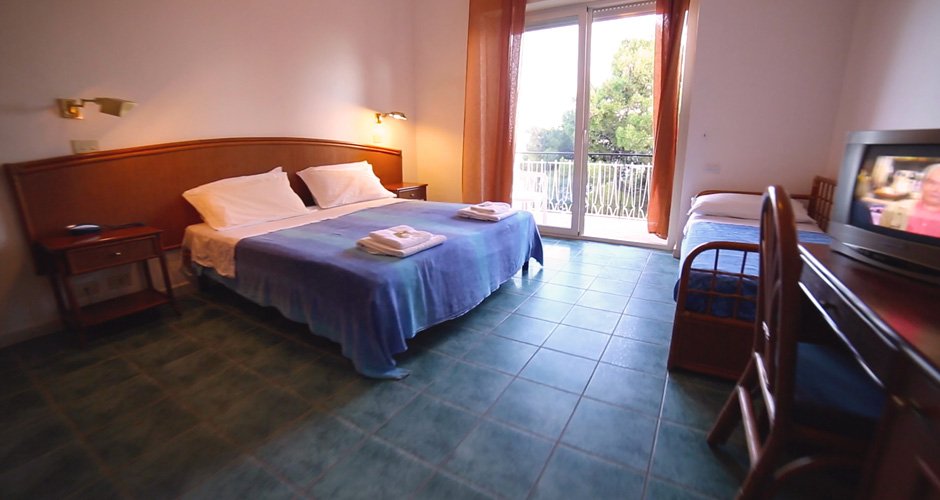 80 rooms, almost all panoramic with terrace or balcony, are equipped with private bathrooms, heating, air conditioning, safes, minibar, telephone, hairdryer.